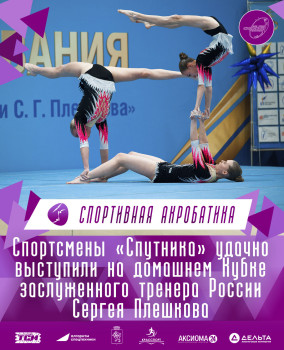В Красноярске прошли всероссийские соревнования по спортивной акробатике «Кубок заслуженного тренера России Сергея Плешкова». За три соревновательных дня на ковры вышли 240 спортсменов из семи регионов страны. Представители Красноярского края завоевали 24 награды турнира – 13 золотых, 5 серебряных и 6 бронзовых. Спортсмены СШОР «Спутник» г. Красноярска завоевали 20 медалей.